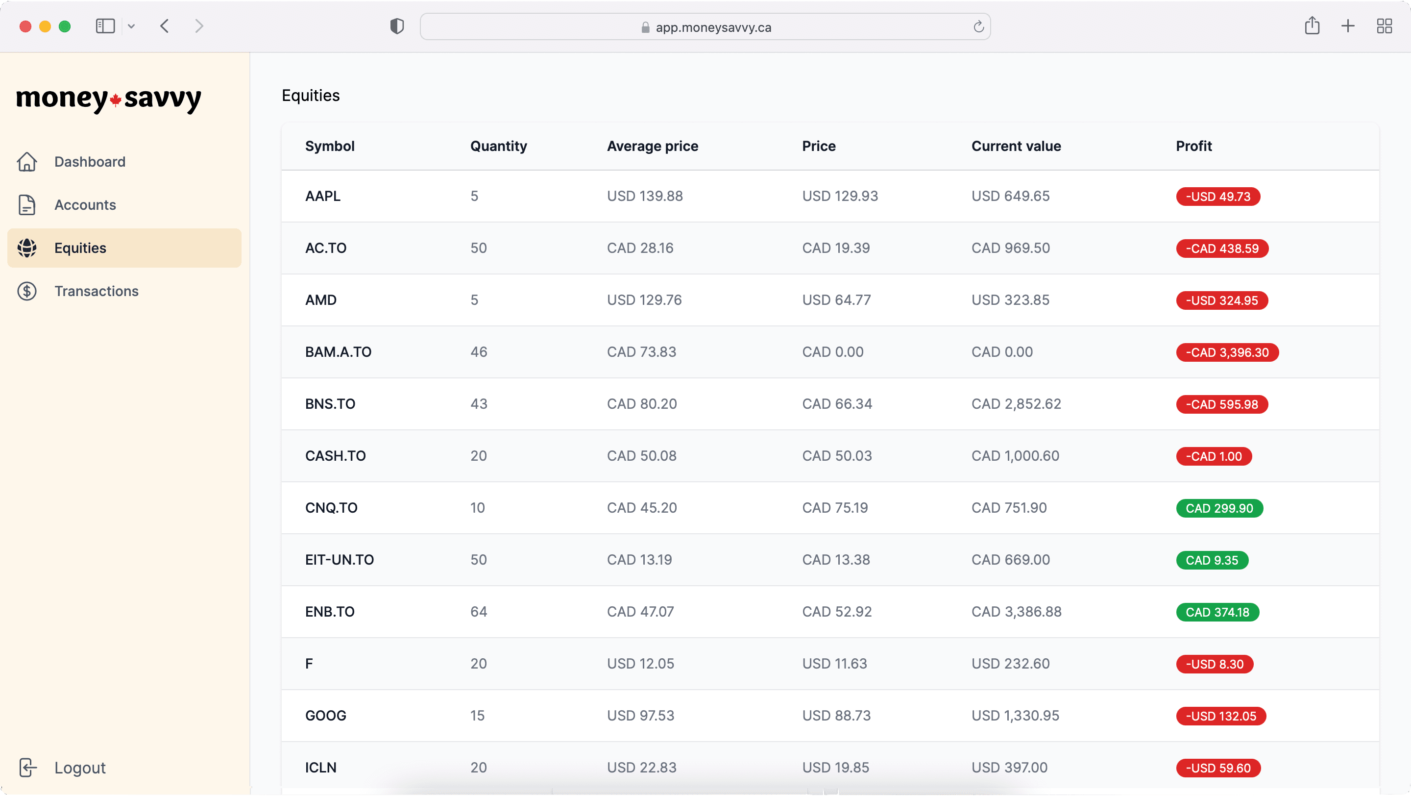 MoneySavvy combines all your holdings in one place to give you a clear picture of your net worth in an instant.