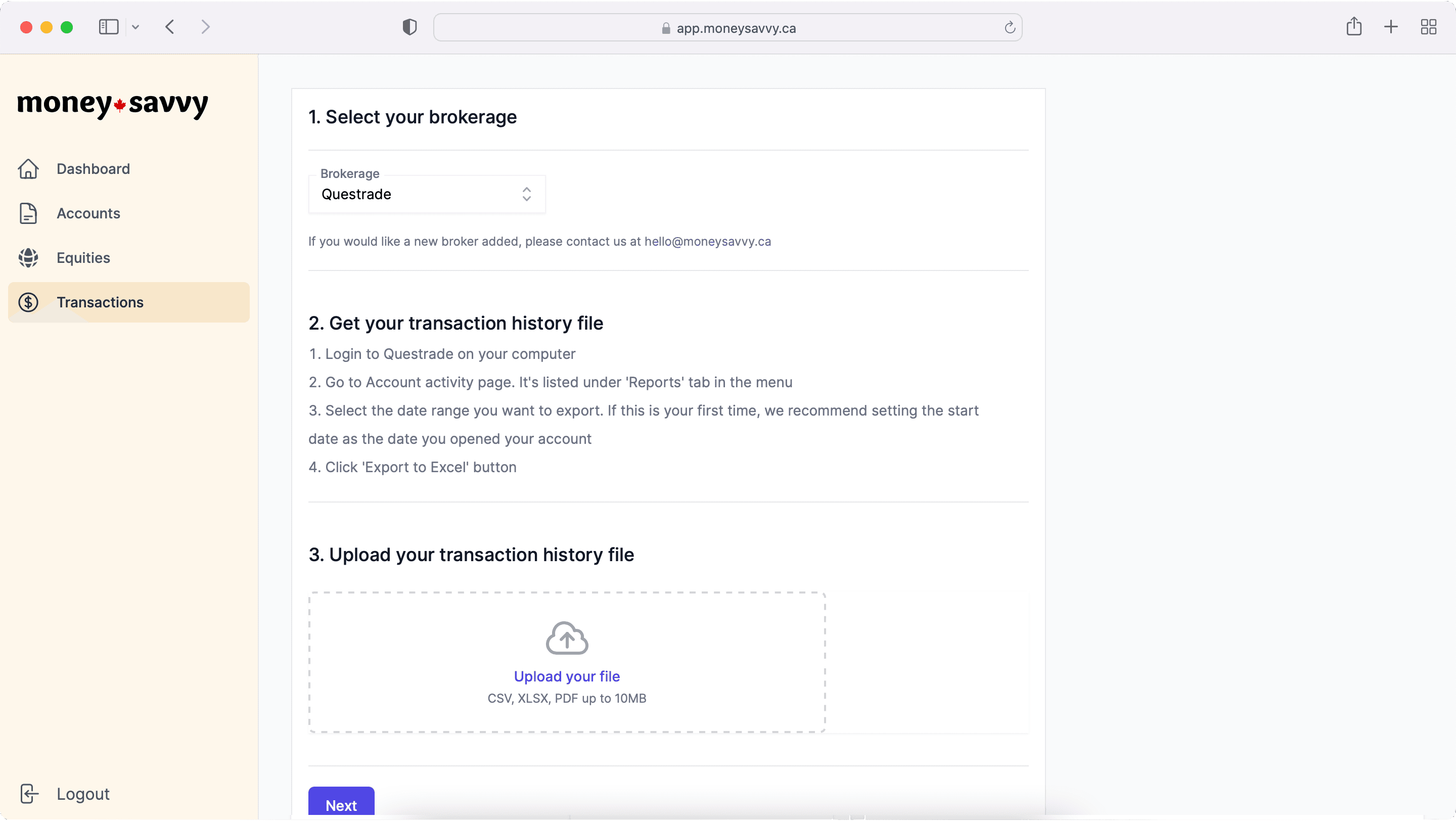 Add your transactions manually or by uploading a file. We support a number of Canadian institutions.